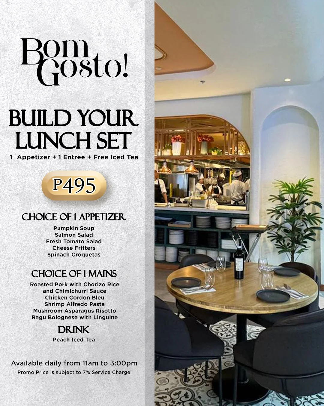 Lunch sets is available at Bom Gosto One Ayala, Newport & Podium branches starting January 19, 2026, and runs until December 31, 2026