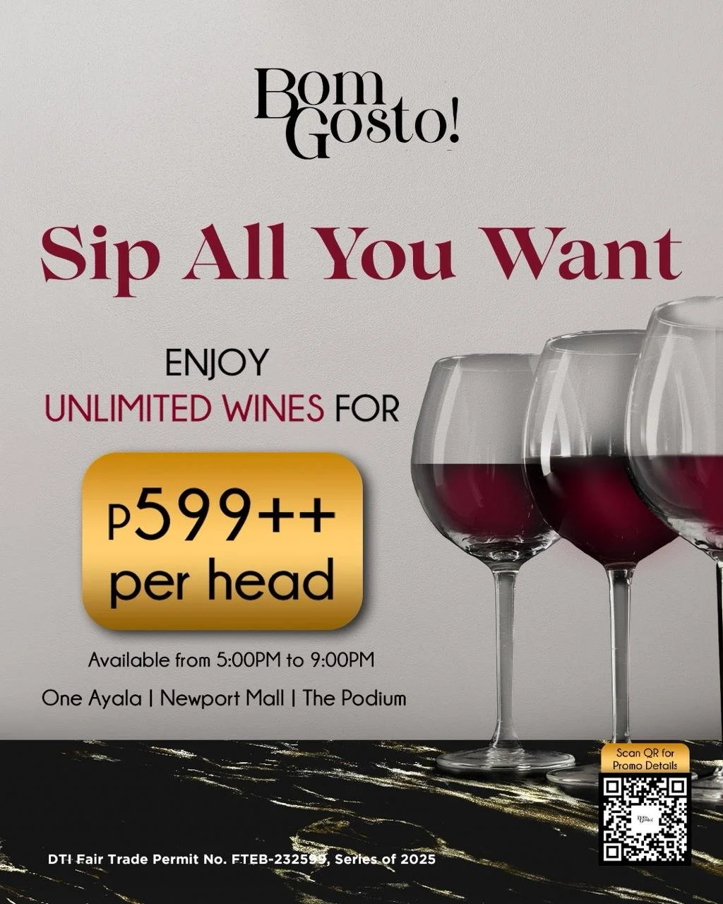 3. The UNLI WINE PROMO runs from August 1 to December 31, 2025. From 5 PM to 9 PM only.