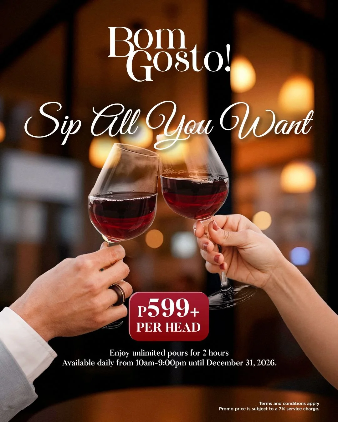 Guests must be 18 years old or above to avail of the UNLI WINE Promo. A valid ID must be presented for verification.