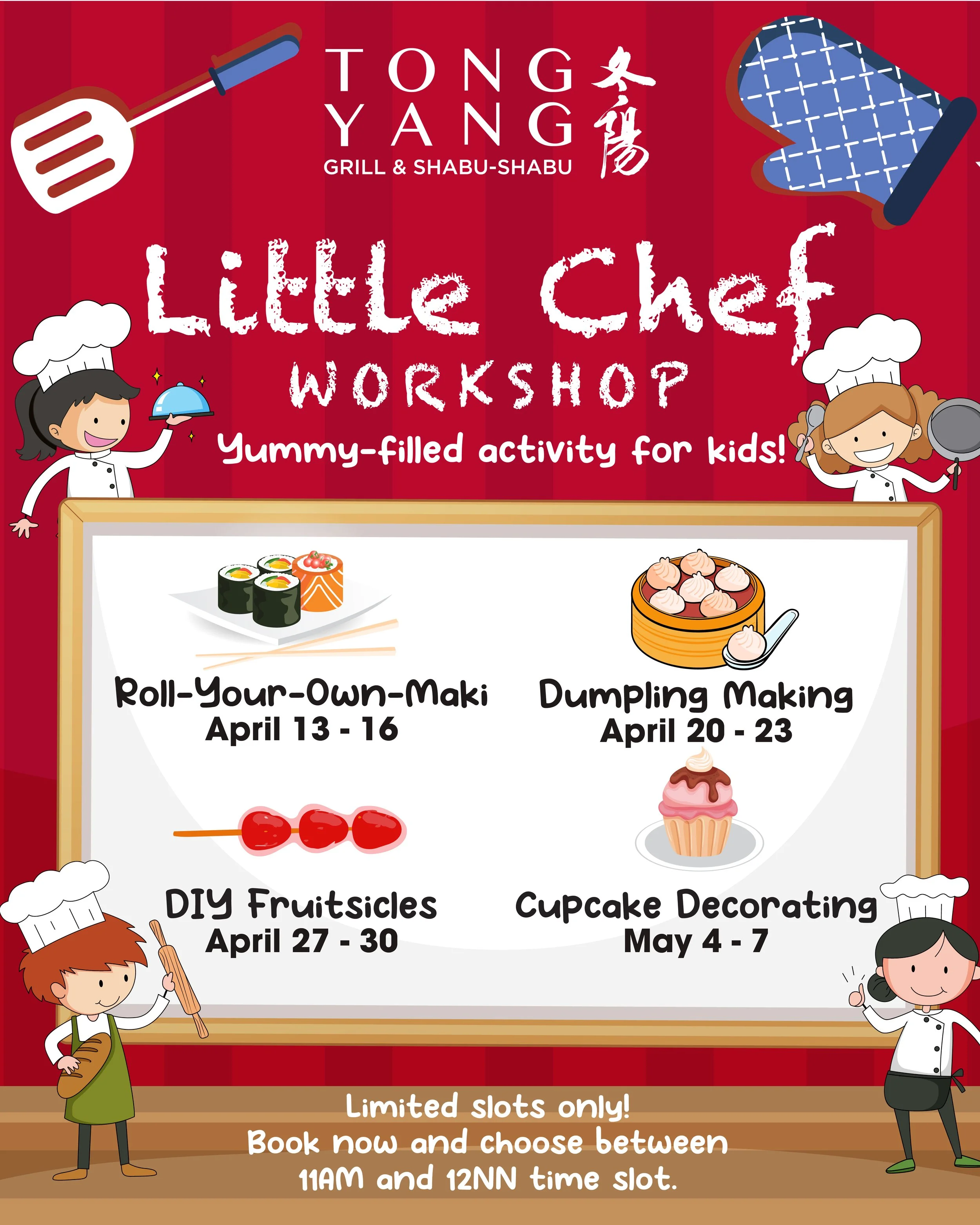 1. Open to dine-in kids ages 5 to 12 years old. No additional fees are required to join the activity.