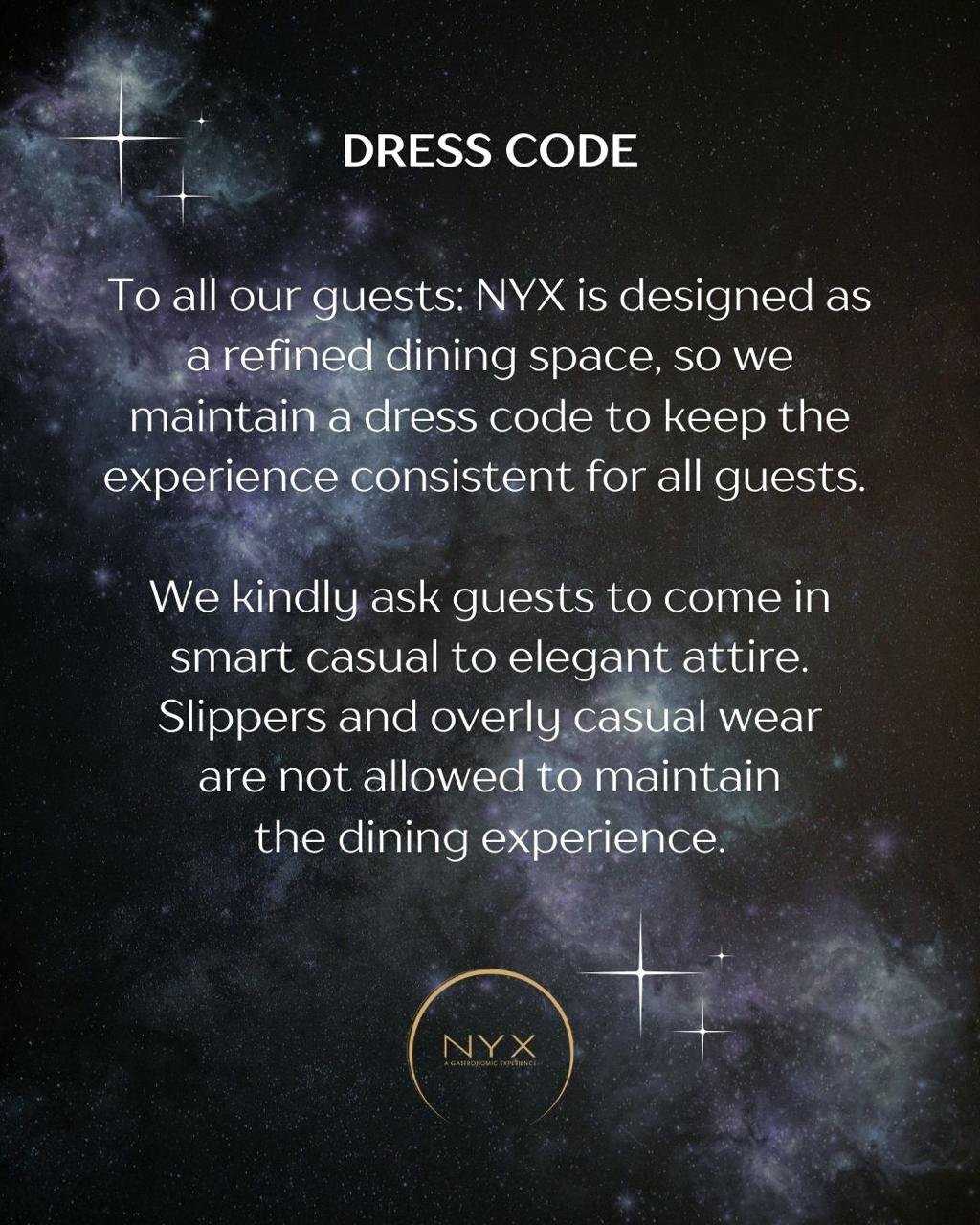 At NYX, dining is unhurried and intentional—created for guests who like to explore, linger, and enjoy every moment. Thoughtful service anticipates your needs, while each course invites you to slow down and stay a little longer.