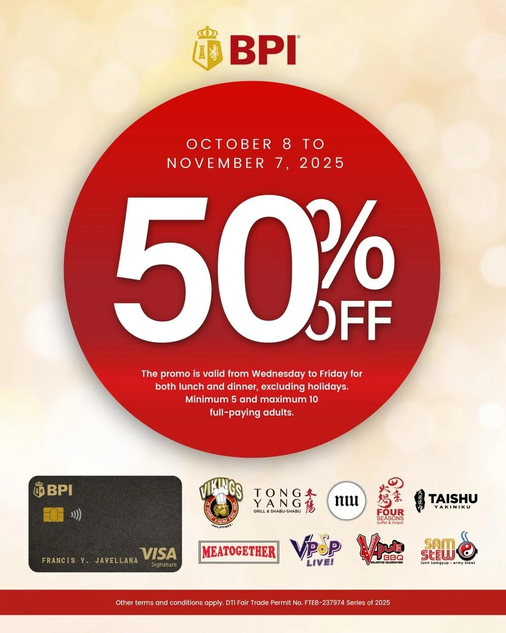 1. Promo is valid from October 8 to November 7, 2025 (excluding October 31), Wednesday to Friday only, excluding holidays.